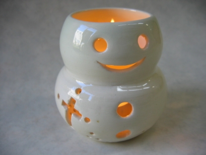 ![]() 雪だるまの陶灯 真っ白な生地にほんのりと暖かいロウソクの灯火、愛嬌のある表情と形、ほんのりと心暖まる作品です。 |