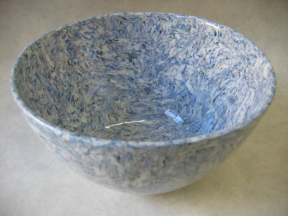 ![]() 練り込み碗 右上の紫陽花の組皿の削りかすを再利用し作成した鉢。微細な模様が美しいが、削りかすまで再利用し器に生かす姿勢が美しい。 |