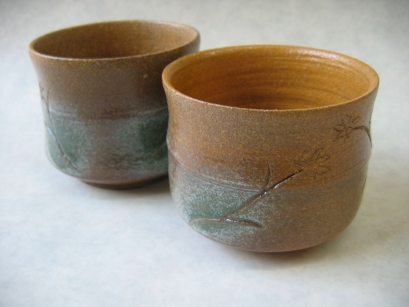 ![]() 鉄系釉と銅系釉の組み合わせ焼成したぐい呑み。 |