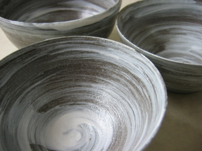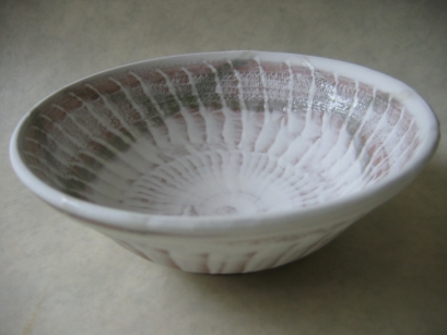 ![]() 打ち刷毛目の鉢、中も外も打ってあるところが新しいですね。 |