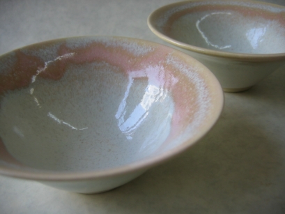 ![]() 朝顔の小鉢(桜色) 白釉と桜釉を組み合わせた作品。左のうつわ同様、夏の涼しい朝を連想させる作品です。 |
