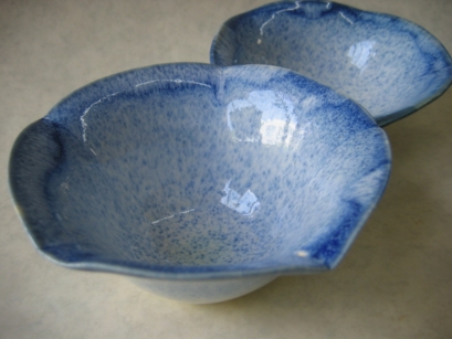 ![]() 朝顔の小鉢(青) 白釉と青釉を組み合わせた作品。朝露の滴りが思い浮かぶ逸品ですね。 |