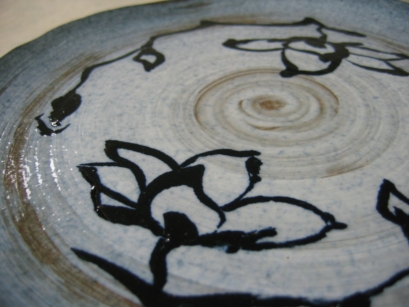 ![]() 粉引き呉須絵皿 睡蓮の花でしょうか、梅雨の到来を予感させる作品ですね。 |