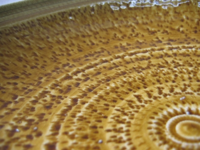 ![]() そば釉の大鉢 直径約30センチの鉢です。しっかりと施釉された器胎は見事にそばの結晶作りました。 |