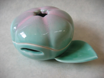 ![]() 桃の香炉 蚊取り線香も入れられる桃(たぶん)の香炉です。かわいいですね。 |