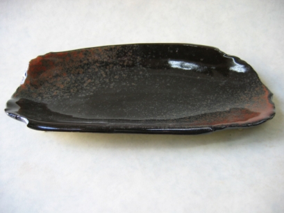 ![]() 天目釉と赤結晶釉による掛け合わせの皿 暗闇に浮かぶ紅葉の景色を連想させる作品ですね。 |