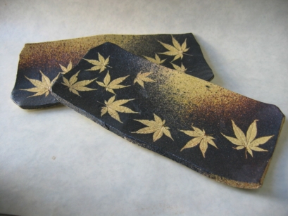 ![]() 秋らしい紅葉をモチーフに化粧土で彩りました |