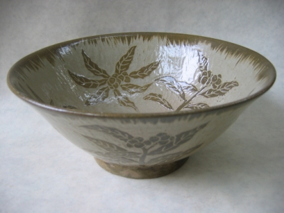 ![]() 掻き落としで植物の紋様を描いたうつわ |