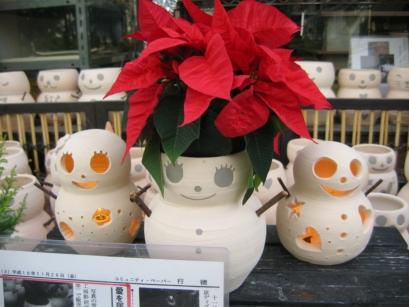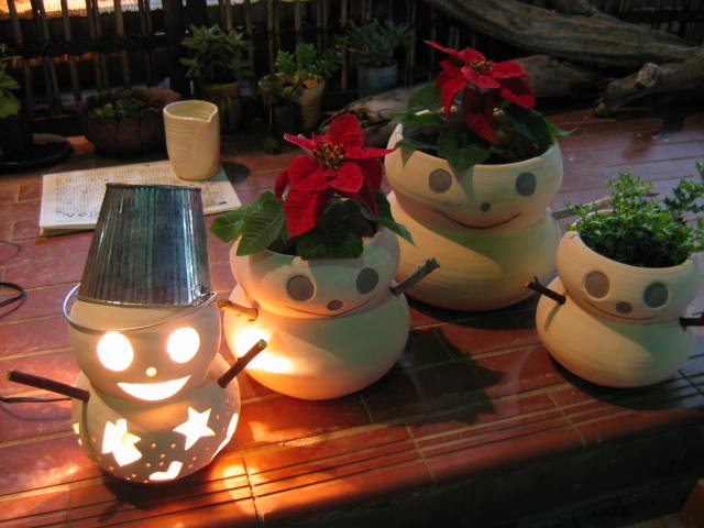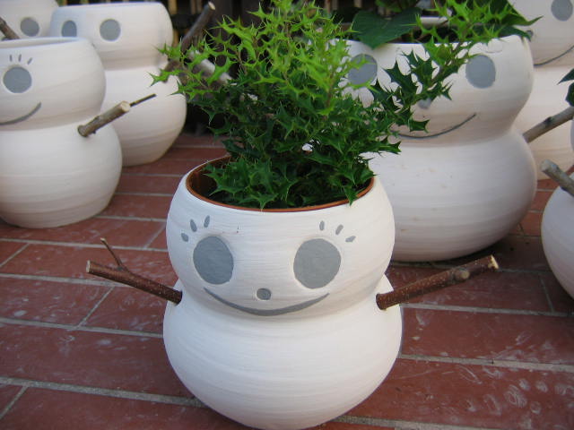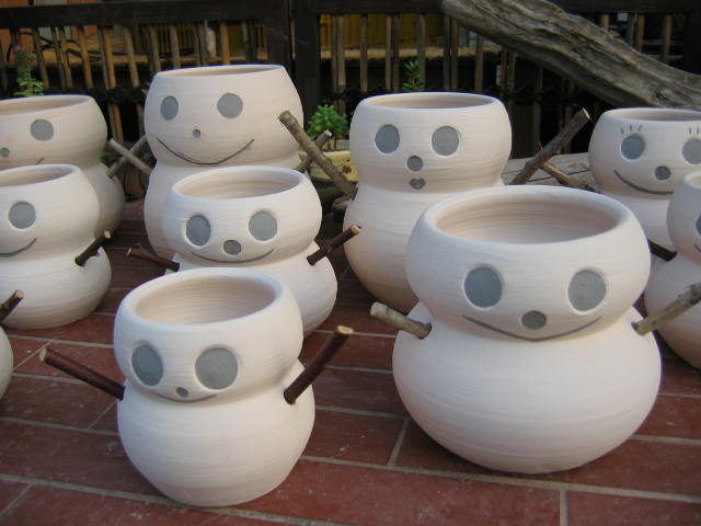 | クリスマス 彩泥窯では屑になった陶材料を廃棄せず、再生しています。再生した土でクリスマスの雪だるま植木鉢を作りました。 これらは11月17日(水)頃から工房前にて販売します。 (売上利益はフォスタープランを通じて発展途上国の恵まれない子供達に寄付します) ★★★雪ダルマ植木鉢のページへ★★★ 2004年11月17日~販売開始 |