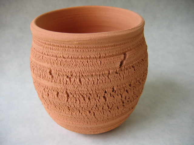 | 春の植木鉢販売会 再生粘土で制作した、松皮の植木鉢や櫛目の植木鉢を彩芽前で販売します。1個600円~300円です。鉢は寄せ植えもできる大きなサイズ、30センチ! 春の芽吹きの季節、新しい植木鉢への植え替えはいかがでしょうか。 2006年3月24日(金)から (売上利益はフォスタープランを通じて発展途上国の恵まれない子供達に寄付します) 取材を受けた植木鉢です |