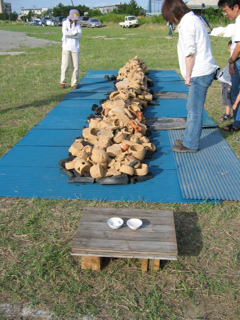 一昼夜かけて焼きあがった作品達、割れてしまった作品もあったけれど、全て上手くいかないのも陶芸の魅力の一つ。