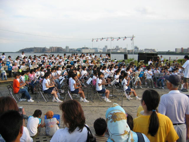 同市の中学生吹奏楽部が焼成に併せて演奏 |