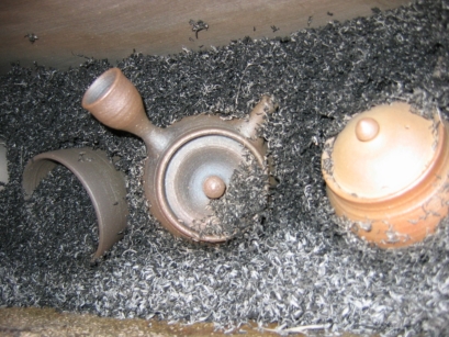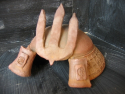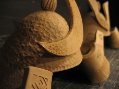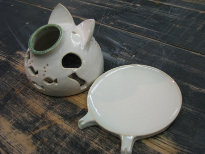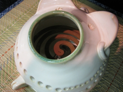 今年の蚊遣り豚(かやりぶた)は三年前に彩泥窯で生徒さんが作っていたものの進化版です。絶品の下のほう。マウスで光ります。