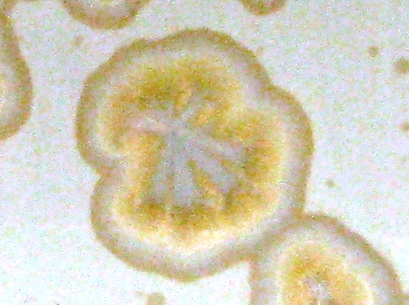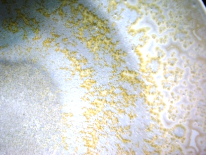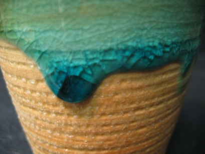 誰もが難しいと思っている結晶釉。いえいえ・・そんなに難しくありません。彩泥窯では繰り返しの焼成テストで理想的な再現環境を習得しました。さあ!みなさんも美しさキワ立つ結晶を作ってみましょう! ![]() 大きく成長した結晶釉、右は小さい結晶の拡大写真 |