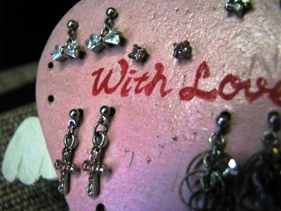 こちらはハート型のピアスホルダー。手作りはいいですね、毎日ピアスを選ぶのが楽しみになりそうです。。 ![]() |