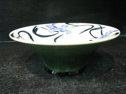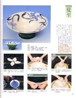 特練半磁土を使って電動ろくろで水挽き成型。素焼後、和紙染めにて菖蒲を染めていく。千切った和紙と染付による効果は美しい花を手軽に描ける。美しい和紙染のコツテクニックを紹介。