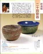 白土を電動ろくろで水挽き成形。整形後に草村の紋様となる鎬と露蛍、夜明けの星空となる穴を付けていく。素焼後、蛍の施釉、草村、夜明けの色彩を釉掛けしていく。鎬、蛍、夜明け、それぞれの装飾技法を紹介。 節器:露蛍輝く(つゆぼたるかがやく)大気が冷え、冷やされた水分が、明け方に多くの水滴(露:つゆ)となってが草に付き輝く。また、凍りそうになる頃。未だ夜空に星の輝く夜明けの草原に露が降り、蛍のように輝く景色をモチーフに、寒露の器を作りました。