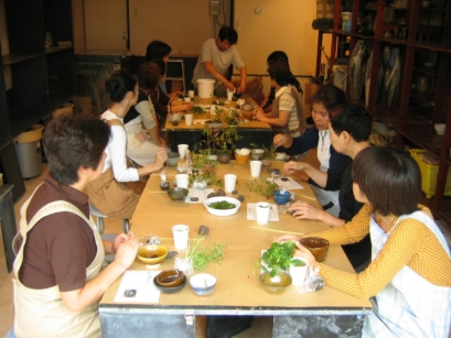 自身の作ったうつわに花を生けてみます。活け方の基本「Shin、Soe、Hikae」生けやすい花器、個性的な花器、独創的な生け方を発想に制作した花器、など。花と器の響き合いを感じてもらいます。