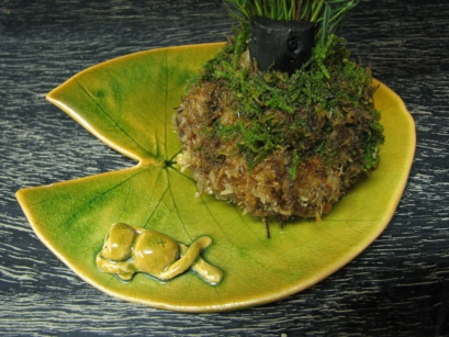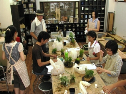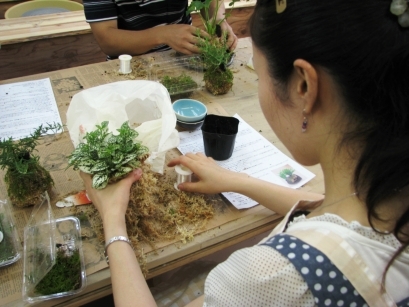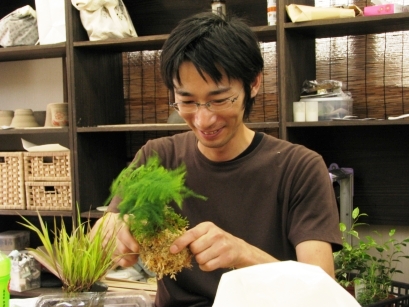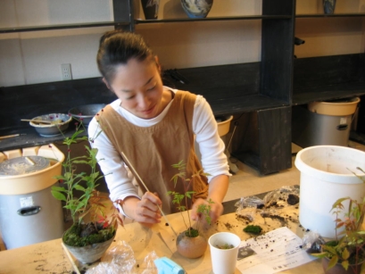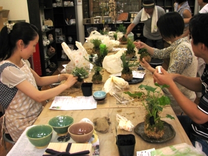 盆栽から派生した苔玉。根洗いという行為を簡単に扱える季節の草などで簡略化し楽しむもの。四季折々の苔玉作りと器使いを学ぶ。
