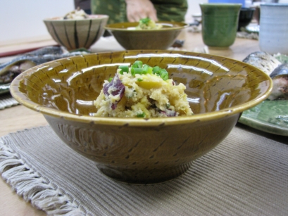自身の作ったうつわにそばを盛り付けて、自分で作ったそば猪口で戴きます。もちろん、おそばは自身の手打ちそば。そばを打つ工程は陶芸と似たところが多く、食するのも美味しく、楽しい講座です。