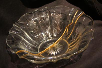 | ガラス皿:ひび割れの修理 | たなびく雲がモチーフです |
