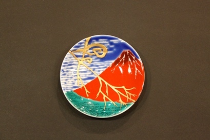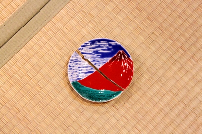 | 九谷絵付け皿(赤富士):われの修理 | 修理前は真っ二つです |