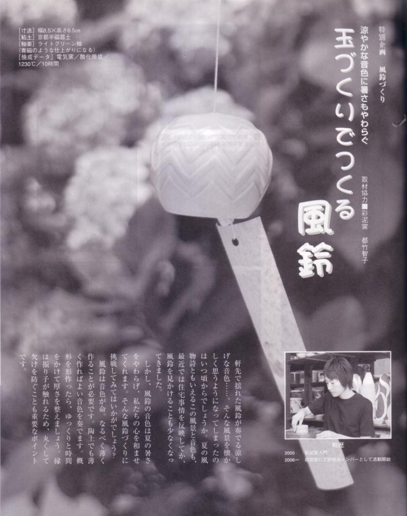 陶芸専門誌、陶遊 が夏の風物詩『風鈴』の取材で彩泥窯に訪問されました。 陶遊HP http://www.top-garden.com/book/ty/index.html |