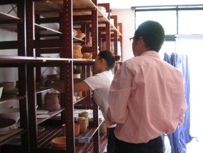 ![]() 電動ロクロの準備、ちょとだけ技術指導 |