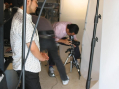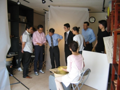 ![]() 写真家坂田栄一郎さんの撮影クルーが到着。背景・光の調整など事前準備スタート。 |