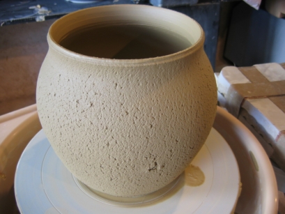 ![]() 再生粘土は粘りが無く割れやすい。その特徴を逆に利用し、松皮のような風合いを持つ植木鉢を作成。 |