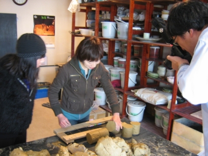![]() 土練機をとおした土を1kg単位でカットし保存。 |