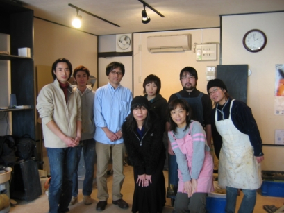![]() 取材終了後の記念撮影。陶遊さんと彩泥窯主宰、及び研究生。 |