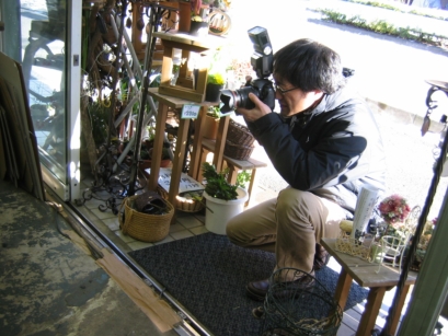 ![]() 近所のお花屋さん(花飛行さん)に移動して取材。 |