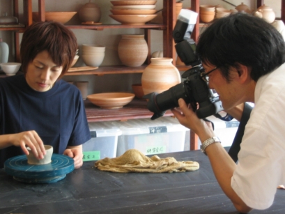 今回の取材は夏の風物詩『風鈴』だそうです。彩泥窯の研究生(都)が取材に応じてくれました。取材内容は「陶遊8月号」のなかで紹介されます。