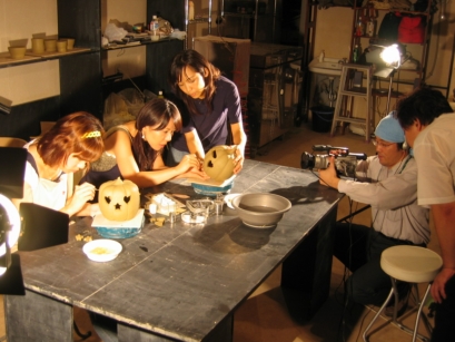 今回の取材は秋の体験教室の特集番組制作だそうです。彩泥窯の研究生(千里)が取材に応じてくれました。取材内容は「Ipod」やインターネットで配信されます。