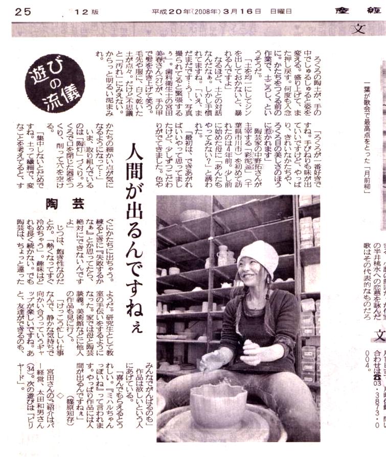 2008年3月16日 産経新聞[朝刊]で彩泥窯の研究生が紹介されました。