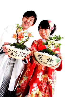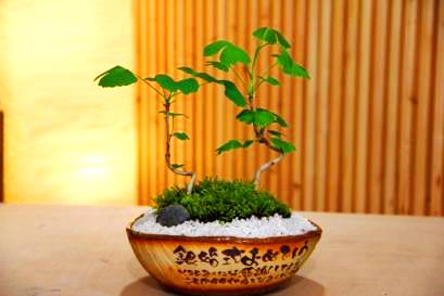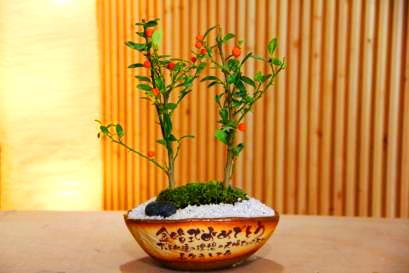 | 還暦祝に赤の長寿梅 | 金婚祝に金豆の夫婦盆栽 | 銀婚祝に銀杏の夫婦盆栽 |