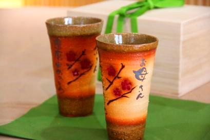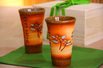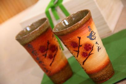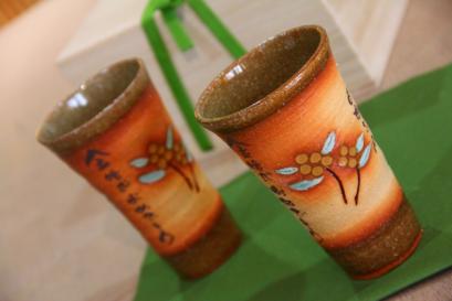 | 夫婦茶碗:15120円(一組二碗)自作は手捻りのみ 夫婦ビールカップ:15430円(一組二碗)自作は手捻りのみ 写真たて:17280円(一枚) 苗木鉢:17280円(一鉢)+苗木一本につき2160円 |