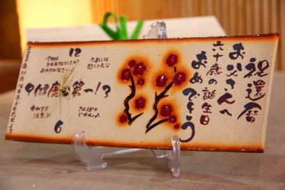 ■似顔絵 メールでお写真を(数枚)送っていただきます。 お写真を参照してかわいく似顔絵を作成します。 ■内側のメッセージ 感謝の言葉をメールで送ってください。 (長文は入りません) ■茶碗の外側のお色 目的に合わせて色を選んで下さい。 還暦=赤、金婚=黄色、銀婚=白、など お客様の自由で選べます。 料金は一碗で10800円(桐箱付き)* 夫婦茶碗(二碗セット)の場合は15120円* オーダーメイドの納期は2週間です。 *配送料別途。 |