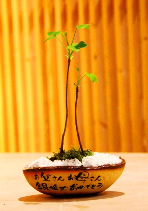 | 苗木鉢 銀婚ミニ | ![]() 銀杏の苗木も鉢もミニサイズ 表参道で発芽から育てた2.5歳の夫婦の銀杏です。 数に限りがありますので、お早めに お問い合わせください 期間限定:価格:10000円 (送料など全て込みで12160円) |
