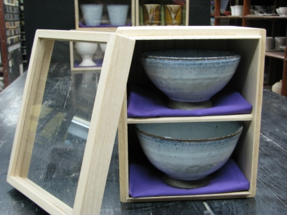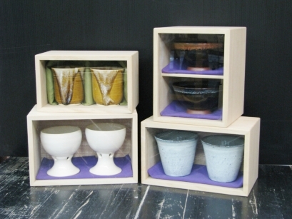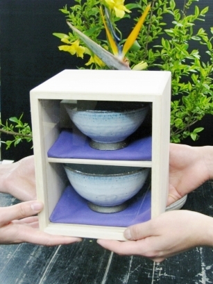 | お客様の皆さんより、多くの声を頂き、彩泥窯で独自に制作した箱の中身が見える、オリジナルの桐箱です。 |