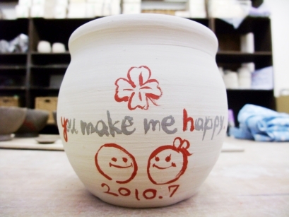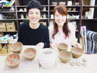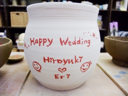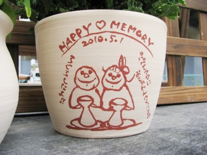 ・お好きなポットを選んで絵付けして頂きます。ポットの指定は出来ません。 ・練習用の生地で絵付けの練習が出来ます。 ・墨文字、朱文字、のどちらかから選べます。 ・お二人への彩泥窯からの記念プレゼントです。お二人以外への贈呈を目的とされる絵付けは固くお断りします。 ・夫婦茶碗などのギフトの仕上げを優先する為、納期は1カ月以上かかる場合がございます。納期の指定はできません。 ・お花、・ラッピングは付いていません。 ・お申し込み、お二人一組で1ポットです。ブライダルギフトコースのお申し込みが前提です。 |