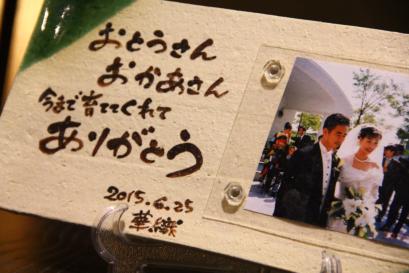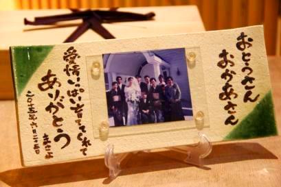 両親贈呈ギフト:世界に一つの感謝を、世界に一つの陶器に 手作りの 写真立て |