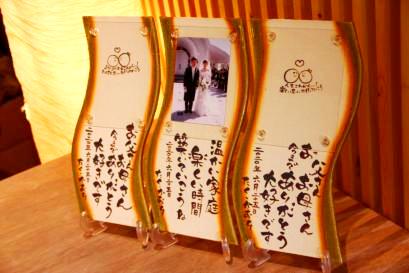二人の手形やデザイン、色、メッセージが、思いのまま。二人が思い描いたデザインを彩泥窯が形にしてお届けします。下段のオーダーフォームより記入してお送りください。 | 陶板の色を選んで、お名前と挙式日を書き添えて注文していただきます。定型メッセージとお名前の入った世界に一つの写真立てが約1週間で届きます。 |