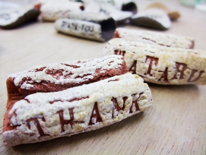 ・制作物:(お2人)100組まで(箸置き200個) ・制作費用:40000円(講師料、材料費、など込み)* ・作品が出来上がるまでには1ヶ月*かかります。 *納期は下記料金を頂戴して短縮することが可能です。 [特急料金(10日でお引渡し):10800円 [急行料金(20日でお引渡し):5400円 |