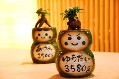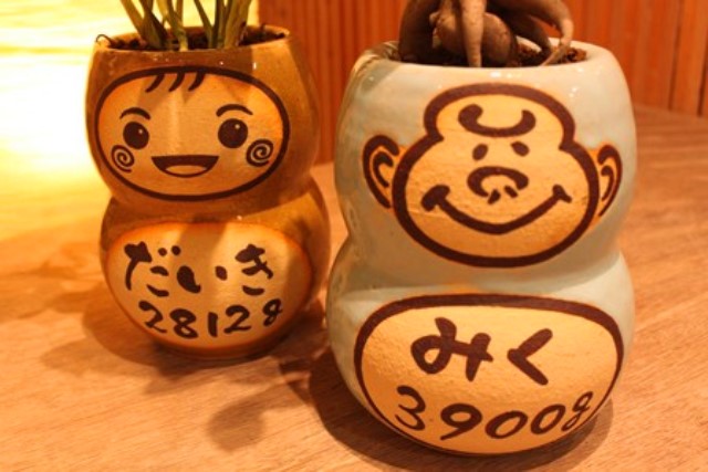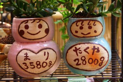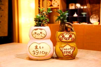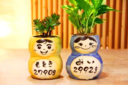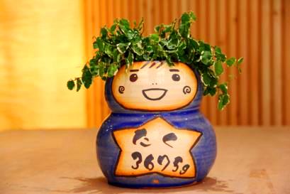 超こだわりの自作の陶器ギフト 初めての方でも楽しくしっかりと制作できるように、熟練の陶芸士がサポートしながら制作して頂きます。(あらかじめ出生体重をお知らせいただき生地を準備します)。ドールには直筆で顔や感謝のメッセージ、絵を入れられます。制作物は彩泥窯で焼き上げて植樹、体重調整、ラッピングしてお渡しします。表参道工房の庭にたくさんの観葉植物が栽培されており、植物選びも楽しみなコースです。 ■納期:4週間 ■価格: ❤:10000円