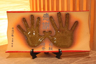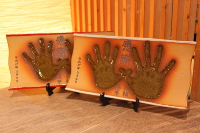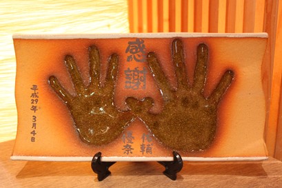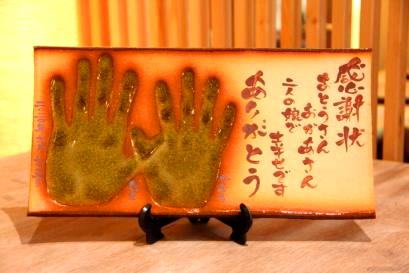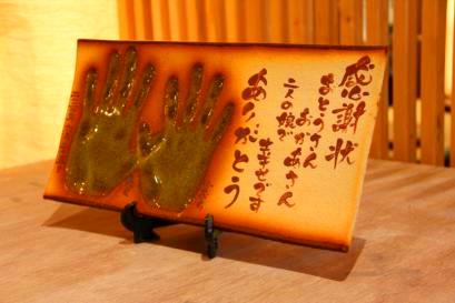 | オーダーメイド制作の例 おふたりの手形も焼きつけました! |