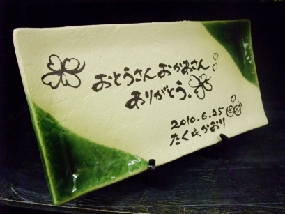 | 祝宴で最後を演出する『ご両親へのプレゼント』をお二人の手作りでできたら素晴らしいですね。彩泥窯はそんなお二人の記念や演出を世界に一つしかない手作りギフトで、プレゼントに値するたしかな仕上がりで、お手伝い致します。 |