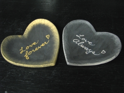 | 世界に一つだけの手作りの愛情陶器で、世界一の愛を伝えよう。作品の裏側には、オリジナルのメッセージが刻印できます。色を変えることもできます。 | ||