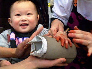 ![]() 小さな手形を、ぎゅ~ パパのハートも、ぎゅー |